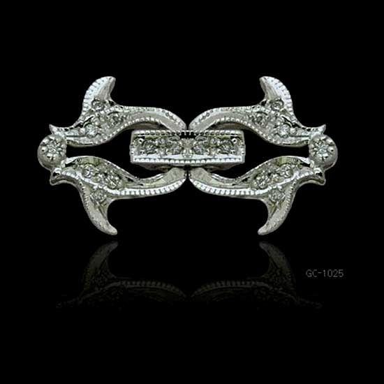 This exquisite ladies' jewelry clasp comes with floral details and sparkling stones embedded all along. The center features a remarkable rectangular charm, dividing the clasp into two sides with perfect symmetry. This beautiful clasp completes your jewelry items with elegance.