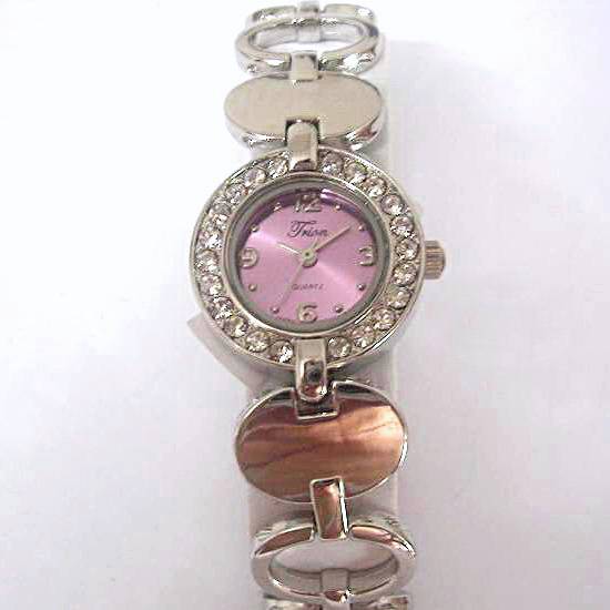 The exquisite jewelry watch comes with a mini round dial and an elegant bracelet with round links. The dial features a shimmering pink hue that adds flattering style. The bezel is also fully embellished with glittering jewel stones for a glamorous look. It makes a classy timepiece to accentuate your look with exceptional taste.