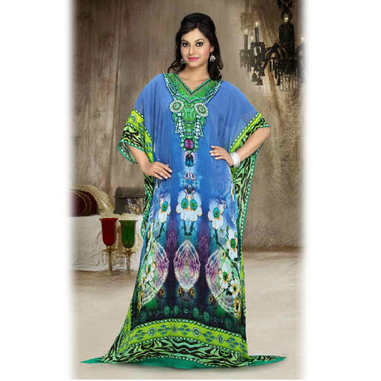 This ladies’ kaftan is remarkable for its bright and flamboyant digital print. It drapes elegantly to the floor for extraordinary elegance. The soft and lightweight fabric can offer you incredible comfort.