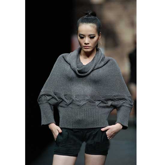 The ladies' knitted pullover features a cowl neckline and pleated detail across the waist. It comes with finely finished cuffs and hemline. Update your winter wardrobe with this trendy pullover.