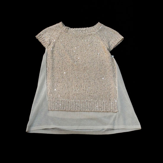 This ladies’ knitted pullover features a unique design for grabbing your attention. The shining sequins and the ribbed neck, cuffs and hem bring a fashionable accent to the whole look. This stylish short-sleeved pullover shows your characteristic side in an instant.