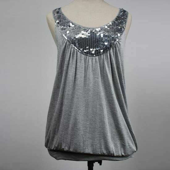 The ladies' knitted vest features a loose-cut bodice highlighted by pleated details. The shimmering sequins give this vest a sense of endless elegance. This stunning vest makes a great addition to your grand wardrobe.