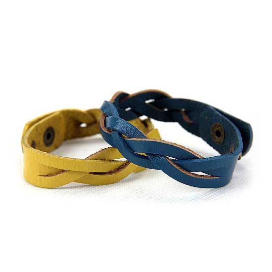 This ladies’ bracelet features a twisted design with a fashionable touch. Made of high-quality leather, it guarantees utmost wearing comfort. There are yellow and blue ones for you to choose from.