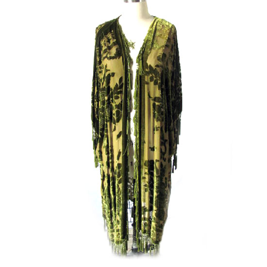 This pictured cardigan gives a robe-like design with a relaxed fit. Finely made with silk burnout velvet and rayon, the sheer cardigan is lightweight and flowy. It makes a bold fashion statement in autumn days.
