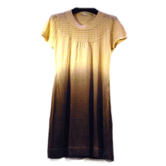 The one-piece dress comes with short sleeves and a round neckline. The dip-dyed shading provides fashionable flair while the quality woolen construction brings you cozy warmth and comfort for wearing. Enhance your wardrobe with this trendy one-piece dress.