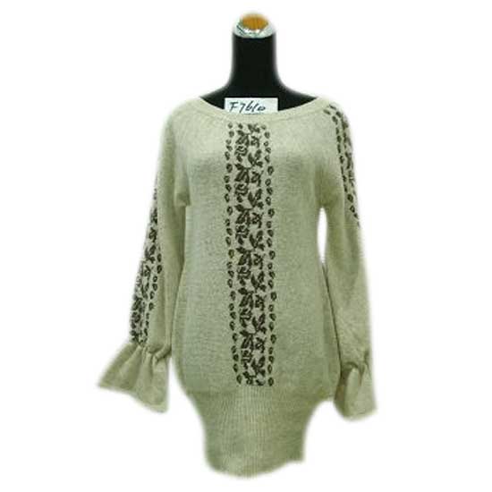 This one-piece dress features a short cut with a broad banded hem. Beautiful jacquard patterns are added on the sleeves to exude a sense of elegance. The nice bell cuffs add extra style to this dress.