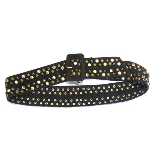 The ladies' belt bestows a stylish design with a distinctive rectangular buckle. It comes with studs in assorted colors for a touch of style. This classy belt is sure a chic addition to match with different outfits.