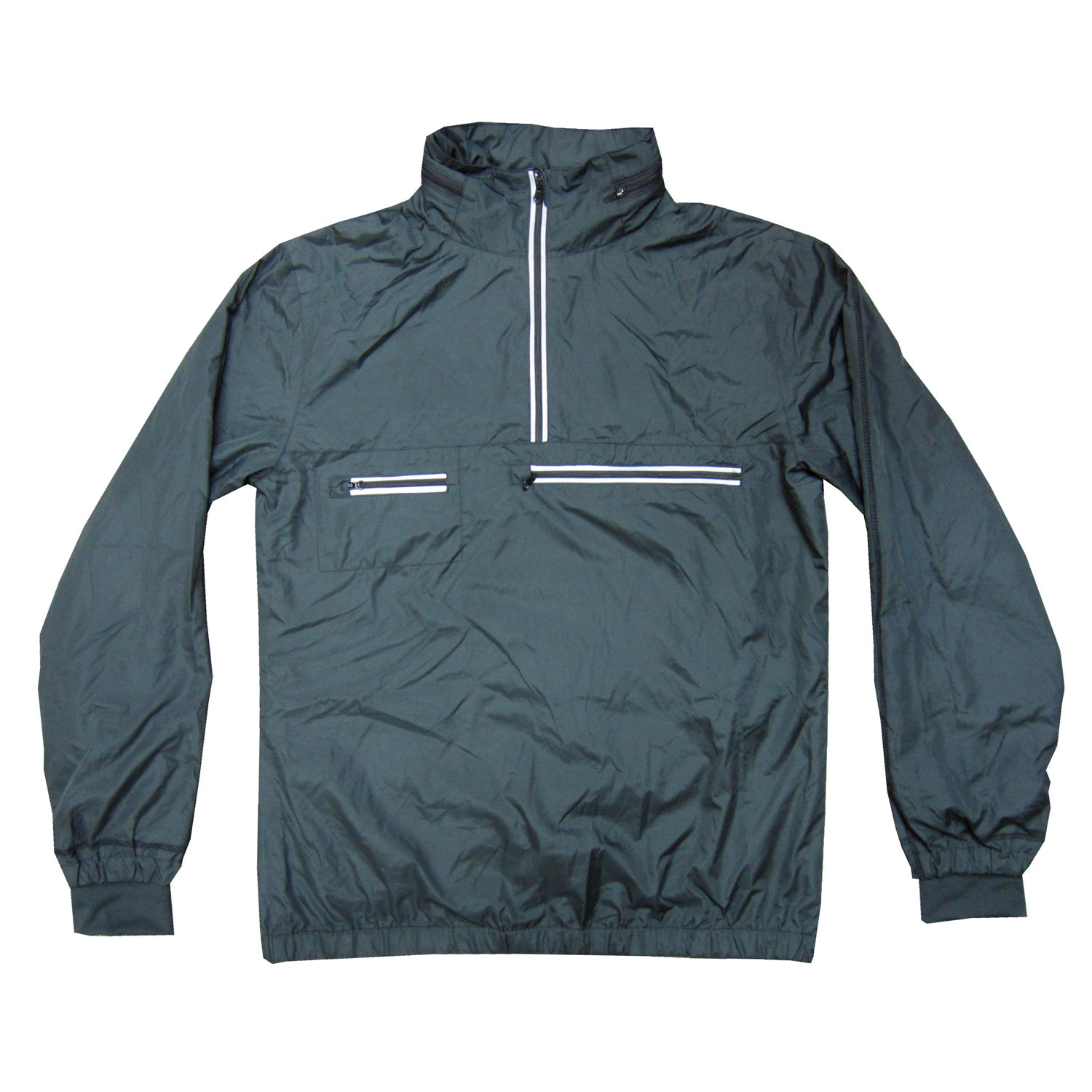 This water repellent pack away jacket is comfortable to wear and is ideal for trips or everyday wearing. It has a concealed hood and has a half zip opening with reflective decoration along zip. The jacket is easy to pack and can protect you from the elements.