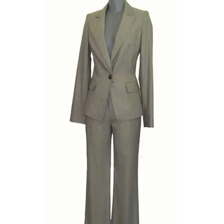 The ladies' pant suit boasts subtle stripes for a stylish look. The long-sleeve suit jacket features a single button closure and 2 flap pockets. Look smart and professional in any business occasions with this pant suit.