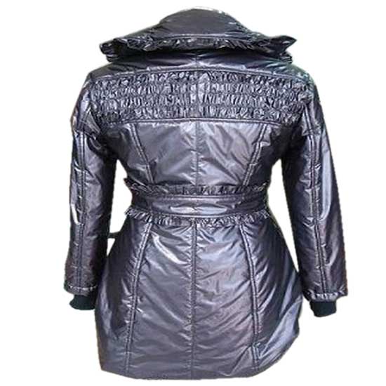 This ladies’ coat flaunts a silver-toned shell with a shimmering finish, evoking a sense of vogue. The back is specially designed with ruched details for added appeal. The gathered waistline shapes form-fitting feminine silhouettes.
