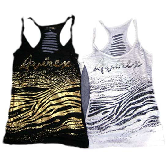 The ladies' tank top comes in a plain color highlighted by zebra-patterned foil printing. The blend of cotton and polyester jersey fabric provides incredible comfort for wear. Add a touch of style to your fashion outfit with this tank top.