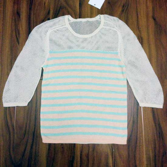 This lovely ladies' pullover features a unique design with mesh jacquard for the sleeves and upper chest area. Made of cotton, this sweater is comfortable and soft. Pair it up with jeans for a youthful and fun look.