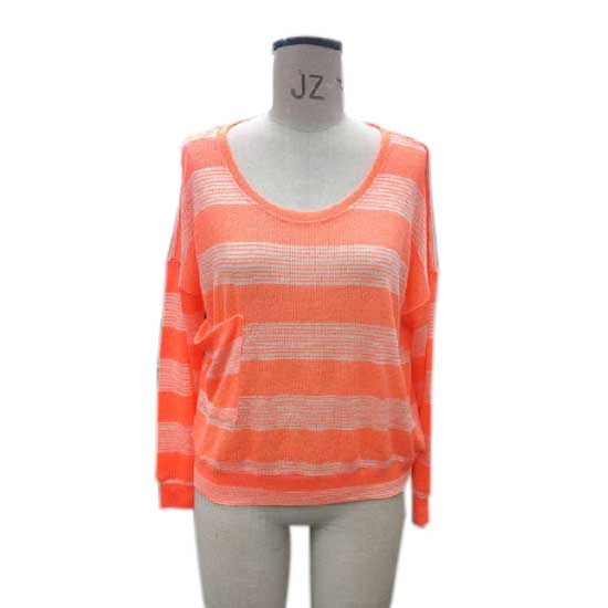 This is a ladies’ pullover sweater that comes with a classic round necklace and long sleeves. It features a two-toned appearance in white and orange for a striking effect. Made of top-quality material, this pullover sweater ensures ultimate wearing comfort.