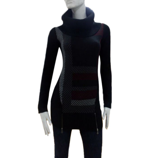 This is a ladies’ pullover sweater that comes in allover black for a classic look. It is designed with a turtleneck, long sleeves, and a slim-fit body. This elegant pullover sweater is soft and comfortable to wear.