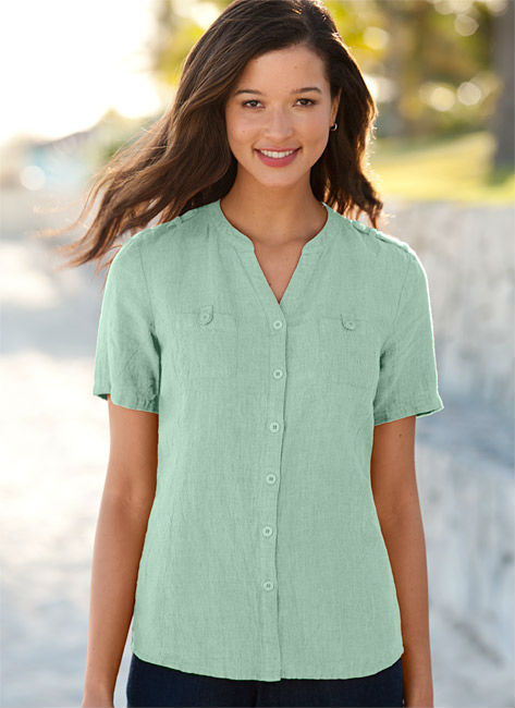 Ladies Pure Linen High Twist Crinkle Blouse