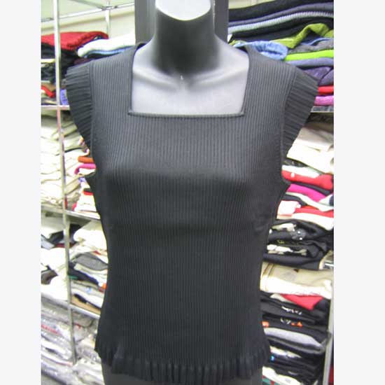The ladies' pullover showcases a square neckline with cap sleeves. It comes with finely finished cuffs and hemline. This stylish pullover is a versatile item that is easy for mix and match.