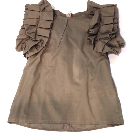 The ladies' top features handmade ruffled sleeves, showcasing a feminine style. It is made of top-grade material for a soft and breathable texture. Put on this top with skinny pants and high heels for a chic look.