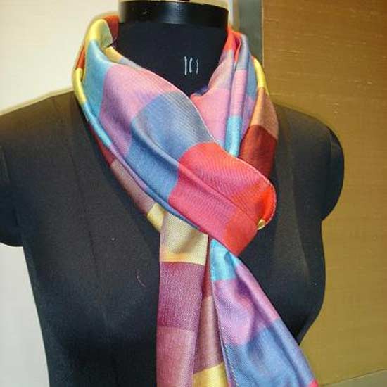 This alluring scarf features a beautiful combination of rainbow colors, adding a delightful dash of joy to your winter wardrobe. Made of delicate silk and viscose hand-woven fabric, it has a distinctive smooth, lustrous sheen and a soft, comfortable texture. Spice up your outfit with this gorgeous scarf.