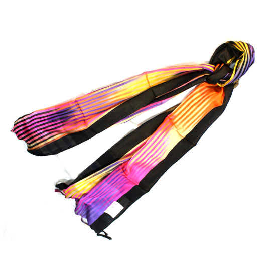 Presented here is a marvelous technicolor scarf designed for ladies. The fascinating range of hues spice up your look instantly. Decorative tassels at the hem finish this accessory with a youthful touch.