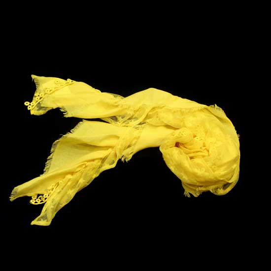 This ladies’ scarf comes with a transparent design for a touch of uniqueness. This fashionable scarf will catch your attention with its vivid yellow tone allover. Made of quality viscose and wool, this scarf can ensure wearing comfort and warmth.