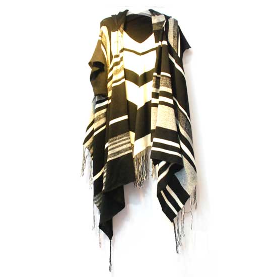 This ladies' shawl showcases a stylish design with horizontal stripes. The raw edges on the bottom hem deliver a fashionable look. Boasting a soft texture, this ladies' shawl promises a blissfully comfortable fit all day long.