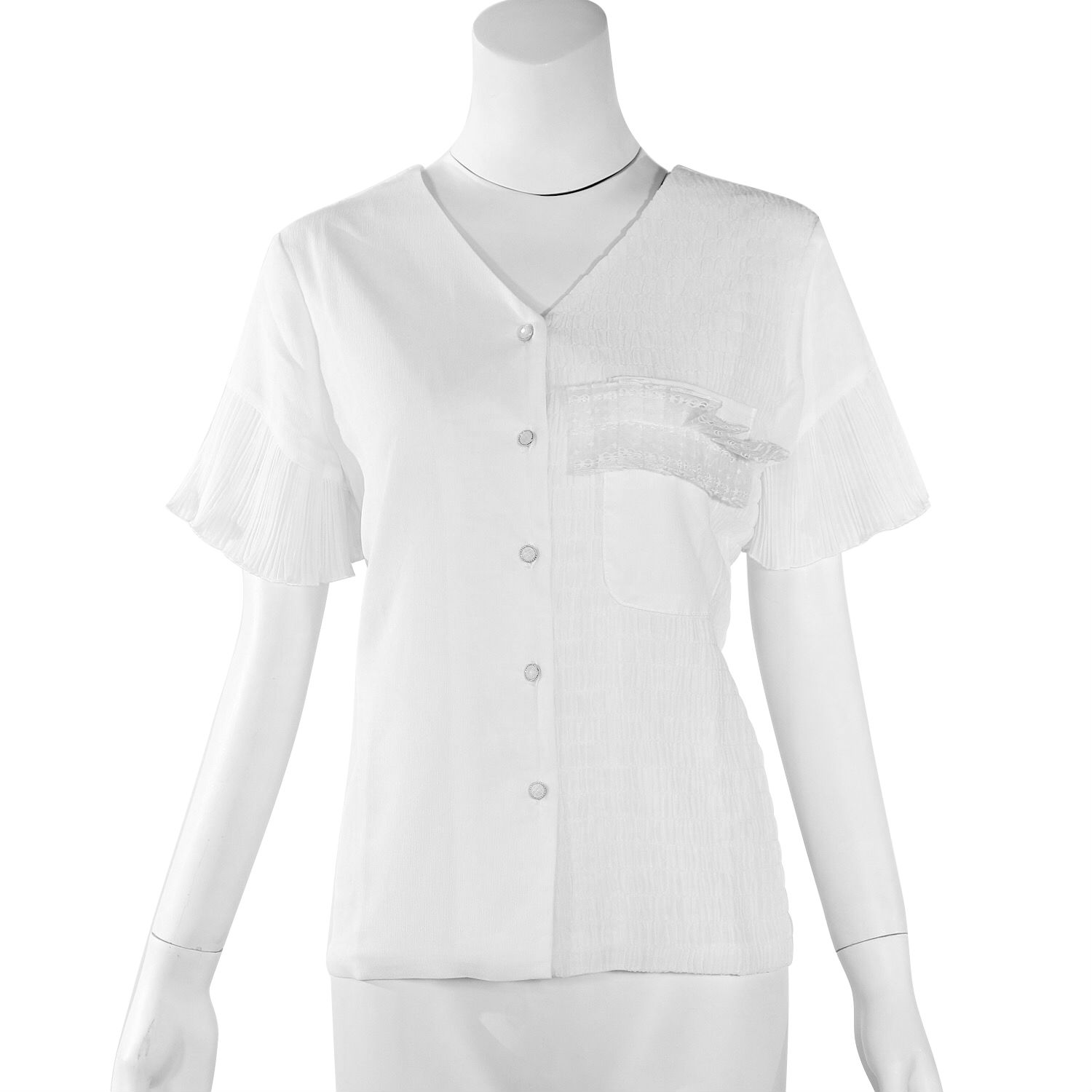 Fitted style, v-necked, button-up
