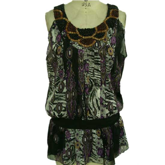 This stunning blouse features a sleeveless design with a scoop neckline. The allover printed patterns lend an adorable touch to the whole design. The delicate neckline comes with the beautiful sequins for an eye-catching style.
