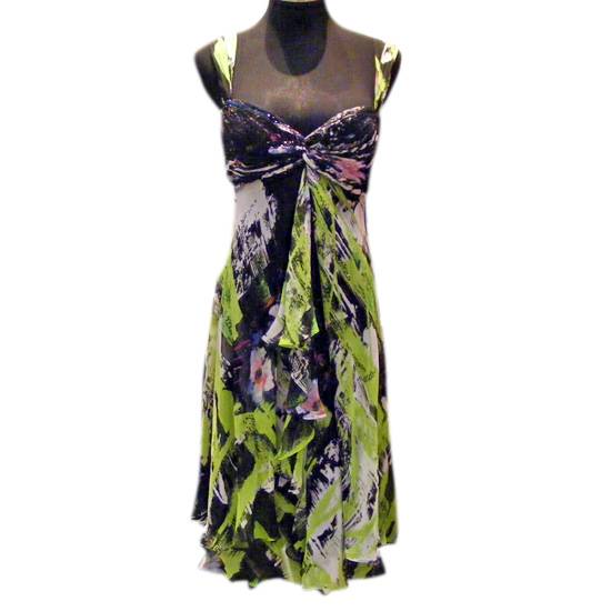 This is an evening dress which is made of 100% silk. On the dress there are embroidery beadings and irregular flower patterns which makes the dress very colourful.