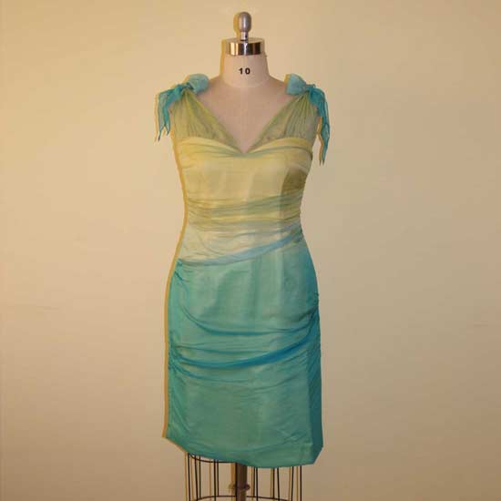 The flattery silk dress is made of silk georgette in gradient colors to showcase a romantic touch. The bows on the shoulders depict feminine elegance. The stunning silk dress is great for parties, banquets, balls, weddings.
