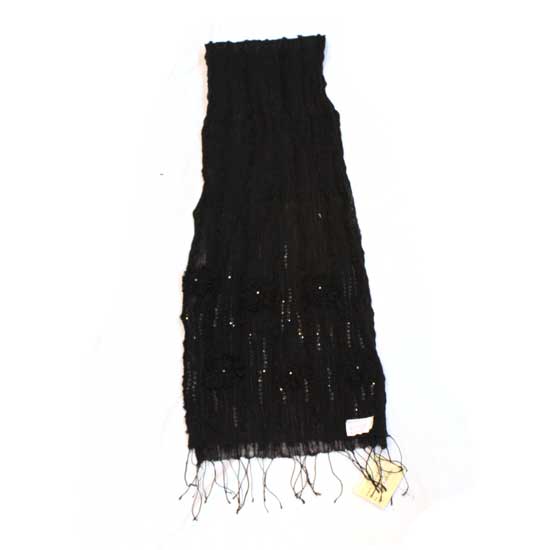 Featured here is a ladies' scarf with a flattering design. The scarf is black in color, embellished with shiny sequins with excellent craftsmanship. The soft and light texture makes this scarf perfect for all seasons.