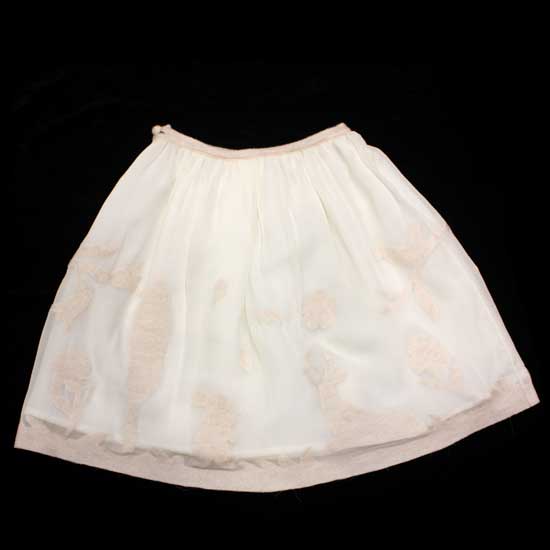 The ladies' silk skirt features wool motif patterns for a decorative touch. It is made of silk chiffon for extra smoothness. This ladies' silk skirt with side zipper is both chic and office-appropriate.