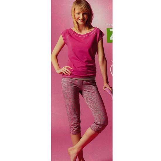 The ladies' sleep wear set features a cap-sleeve T-shirt and a pair of printed three-quarter pants with an elastic waist. They are soft and breathable for incredible comfort. Sleep comfortably in this cotton sleep wear set.