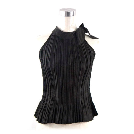 This ladies' sleeveless blouse shows off a forgiving design with the extensive pleats and a slight slim-fit cut. The elegant halterneck is adorned with an adorable ribbon for a stylish accent. This sophisticated blouse makes the perfect piece for semi-causal occasions.