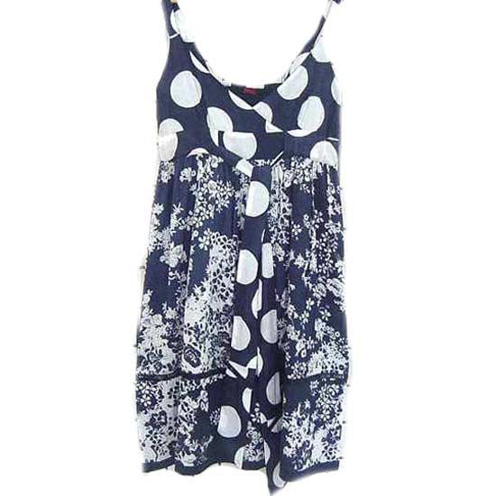 The dress features a fitted bodice and a flared dress bottom. The polka-dot and floral patterns in matching colors give this dress a sense of fashionable flair. Enhance your fashion closet in a pretty way with this sleeveless dress.
