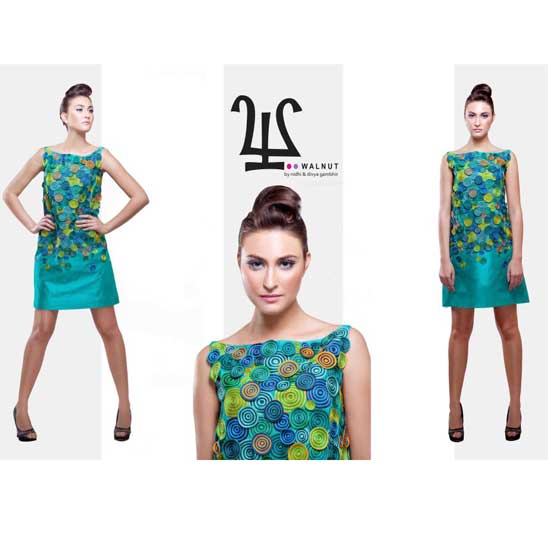 This sleeveless ladies' dress is topped with multi-color round spiral patches on the front. It showcases detailed craftsmanship with meticulous attention to details. The dress pairs well with any high-heel sandals.