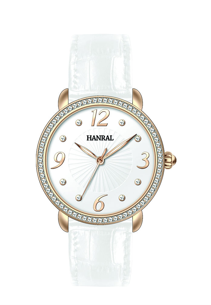 - Arabic and dot hour markings decorated with sparkling diamonds.