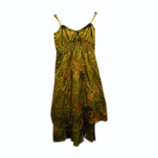 The ladies' dress comes in a strap and V-neck design. The gathers around the bust and the floral patterns add a stylish touch. This cotton dress gives a soft and breathable fit.
