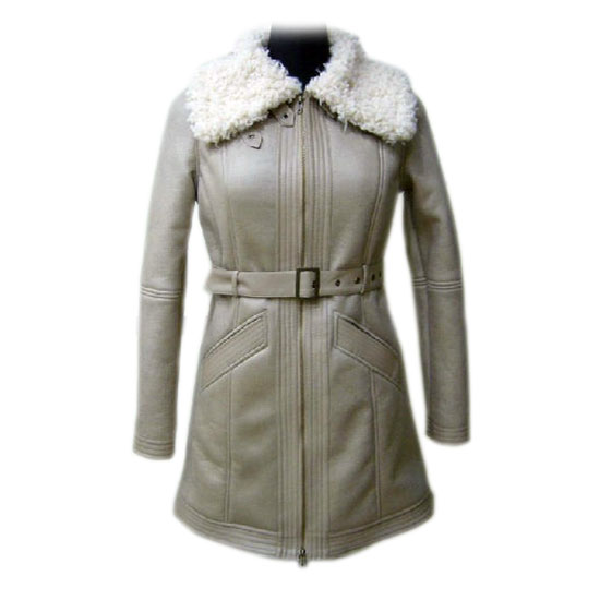 Highlighted here is a classy, charming suede coat for ladies. The wide collar made with composite lambswool offers warmth and comfort. The zippered front with a belt looks simplistic yet stylish.