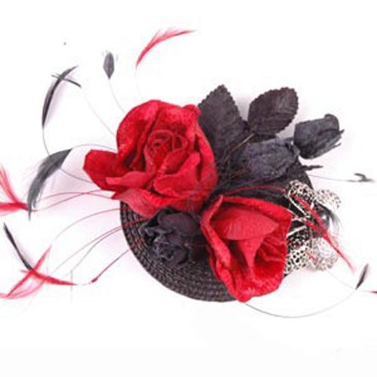 This eye-catching ladies' sun hat is adorned with black and red faux flowers and feathers. It showcases excellent craftsmanship with refined details. The stylish sun hat makes a perfect addition to any formal ensemble.