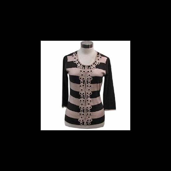 This blouse is 68% rayon , 18% wool and 14% nylon made with a soft and comfortable texture.