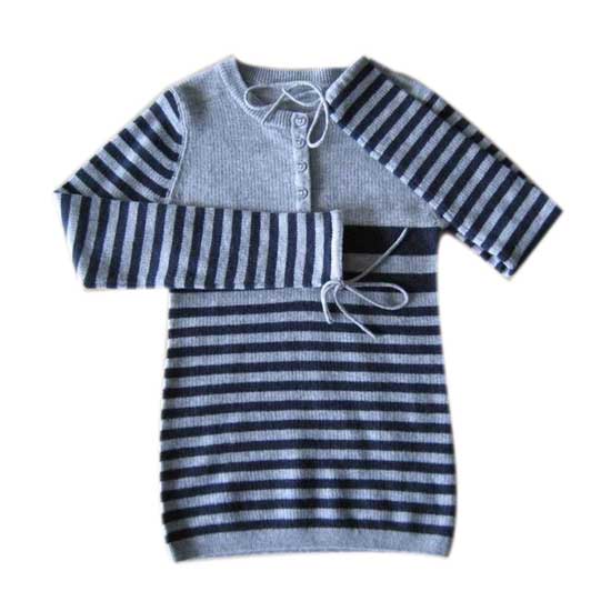 This ladies' sweater features stripes on the sleeves and below the bust for a special design. The button-up bust and laces at the cuffs boast added uniqueness. Add this lovely item to your winter and fall wardrobe for a chic style.