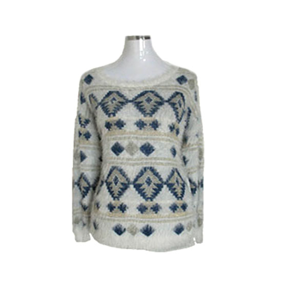 This ladies' sweater features rhombus patterns for a smart appearance. The wide neck design makes the sweater comfy and easy to wear. It instantly completes your casual wear look.