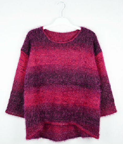 Ladies fashion knitwear, in nature stripe with yarn dip dye effects