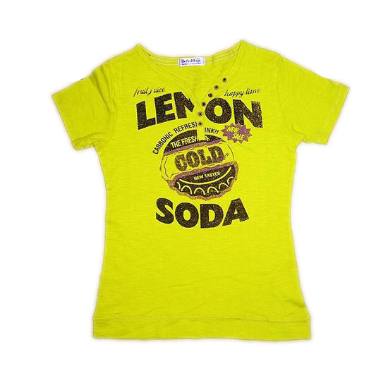This chic ladies' shirt is highlighted by its bright fluorescent yellow color with stylish patterns. Short sleeves, a button V-neck, and a curvy waistline complete this edgy shirt. This vibrant T-shirt reminds you of the younger days with bright and vivid life.