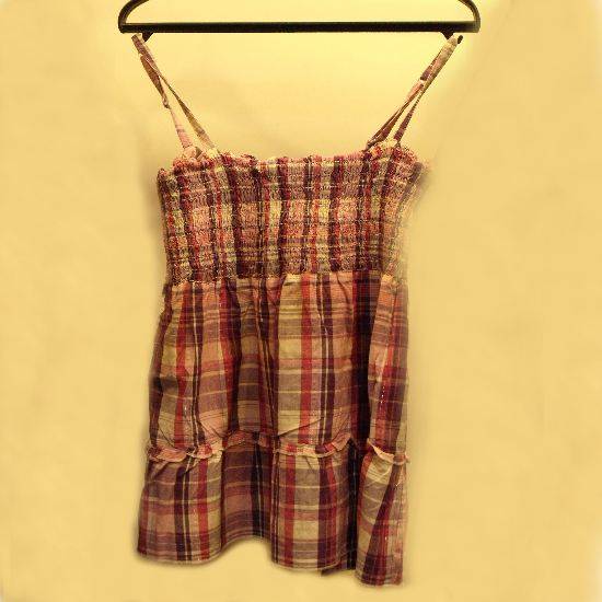 This chic tank top features an eye-catching checked pattern and a pair of adjustable spaghetti straps. The bust is embellished with elastic bands to showcase an alluring female figure. It offers ultra comfort for the wearer in the hot summer.