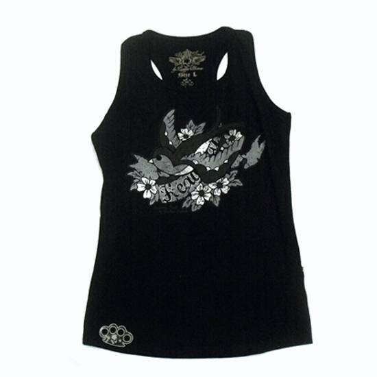 This tank top comes in black for a fashionable look. It features swallow and floral patterns at the front to add a feminine style. The simple yet stylish design makes this top a perfect choice for mix-and-match in summer.