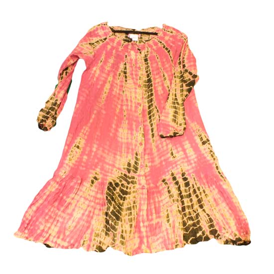 The long-sleeve tie-dyed dress boasts vibrant colors to give an eye-catching appearance. It comes with a smocked round neck for a casual touch. With crinkled styling, this tie-dyed dress is a great addition to your casual wardrobe.