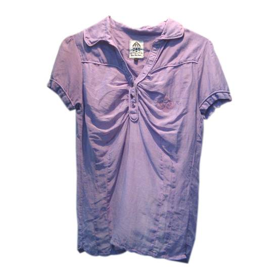 The top has short sleeves with a collar with slightly ruffled on the bust.