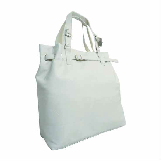 Highlighted here is a fashionable double handle tote bag designed for ladies. It has a spacious compartment for holding your personal items and has a buckled strap for closure. This tote bag comes in an elegant solid colored design and is a great choice for shopping, travel and business use.