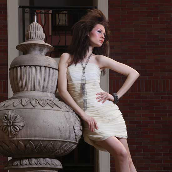 This is a simplistic tube dress designed for the fashionable ladies. This ladies’ one-piece dress is characterized by the delicate pleat patterns all-over for a glamorous touch. The slim cutting is perfect for showcasing an alluring female figure.